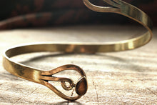 Brass bracelet featuring a high quality Tigers eye from Mexico. Hand made from nickel free brass using the brass soldering technique. Nickel free brass so will not oxidize over time.